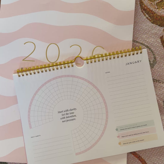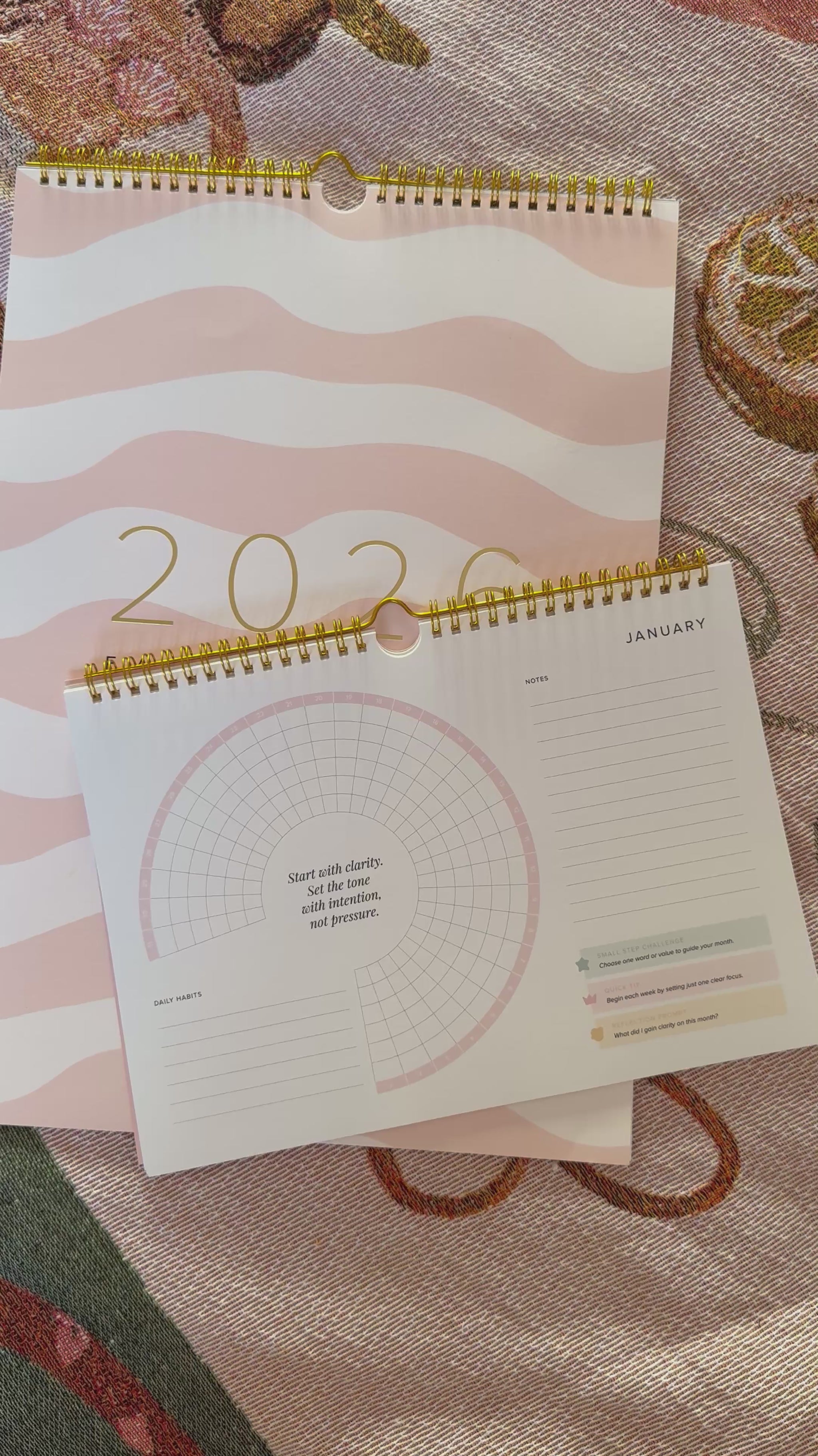 Bring structure and motivation to your month with our beautifully designed Habit Tracker Calendar. Each monthly spread features a half-circle tracker so you can see your progress at a glance, dedicated space for daily habits, and room for notes and reflections. Gentle prompts and inspiring quotes guide you to reset with intention and focus on what truly matters.