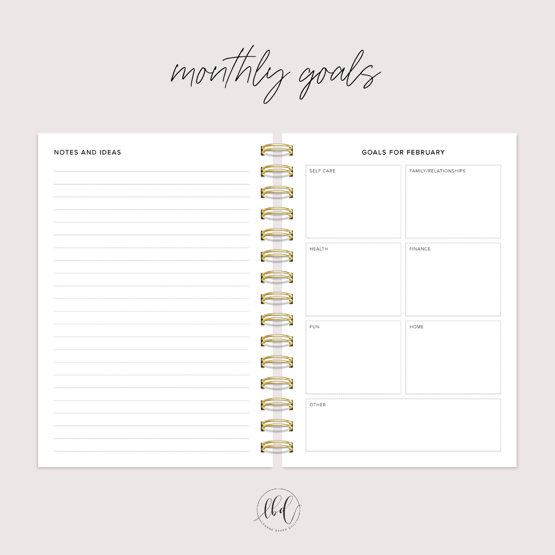 The LBD Weekly Planner was created to contain elements that are key to Leanne’s way of planning such as monthly overview pages, monthly goal setting, weekly meal planning and habit trackers.